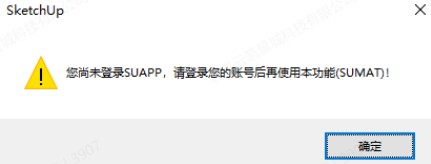点击材质库提示“您尚未登录SUAPP,请登录您的账号后再使用本功能(SUMAT)”: