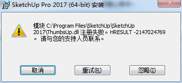 SketchUp安装“ThumbsUp.dll注册失败”怎么办?